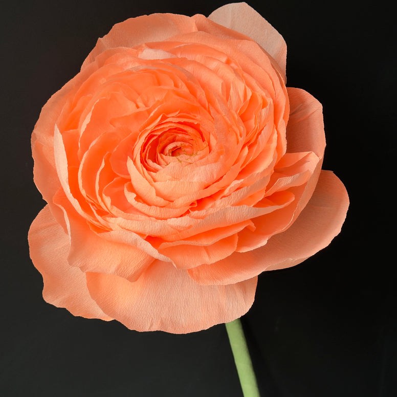 Ranuncolo in carta crespa arancio dal diametro di 25 cm circa.