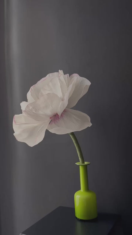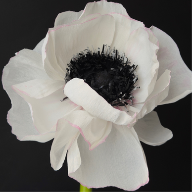 Anemone in carta crespa bianca, con centro e stami neri e bianchi.